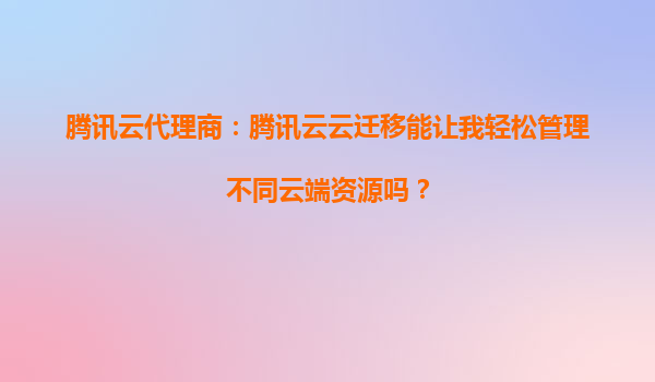 腾讯云代理商:腾讯云云迁移能让我轻松管理不同云端资源吗?