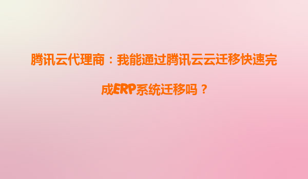 阿里腾讯云代理商:我能通过腾讯云云迁移快速完成ERP系统迁移吗?