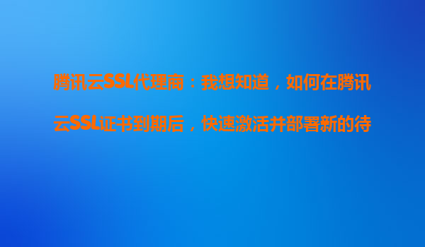 宝鸡腾讯云SSL代理商:我想知道,如何在腾讯云SSL证书到期后,快速激活并部署新的待验证证书?