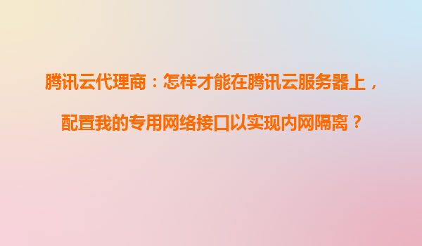 腾讯云代理商指南:如何配置专用网络接口实现内网隔离