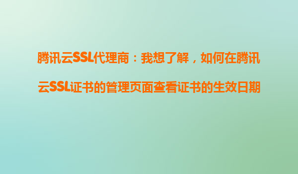保山腾讯云SSL代理商:我想了解,如何在腾讯云SSL证书的管理页面查看证书的生效日期和有效期?