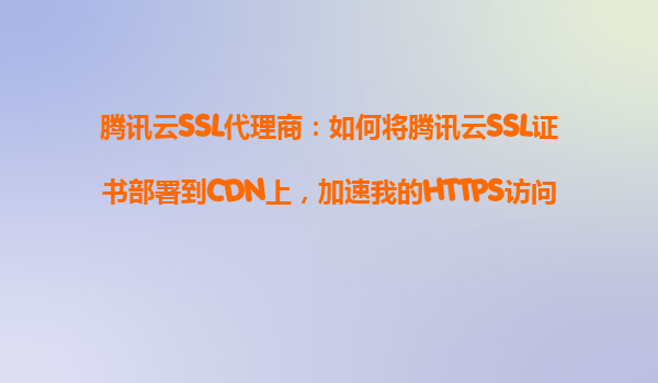 腾讯云SSL代理商:如何将腾讯云SSL证书部署到CDN上,加速我的HTTPS访问?