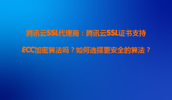 腾讯云SSL代理商:腾讯云SSL证书支持ECC加密算法吗?如何选择更安全的算法?