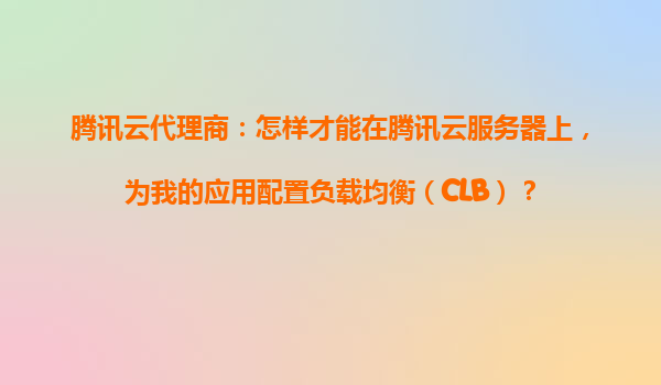福州腾讯云代理商:怎样才能在腾讯云服务器上,为我的应用配置负载均衡(CLB)?