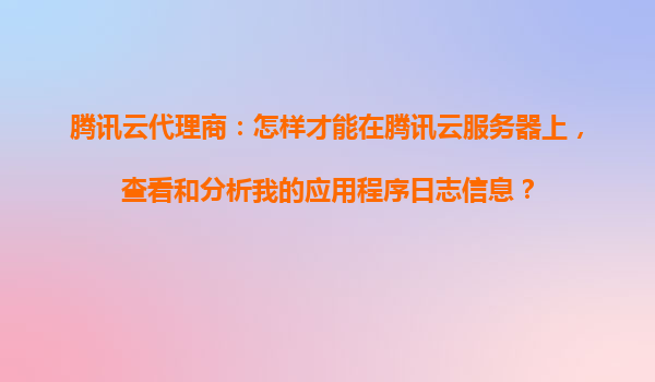 福州腾讯云代理商:怎样才能在腾讯云服务器上,查看和分析我的应用程序日志信息?