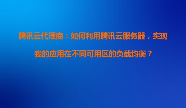 福州腾讯云代理商:如何利用腾讯云服务器,实现我的应用在不同可用区的负载均衡?