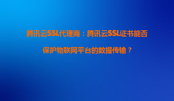广安腾讯云SSL代理商:腾讯云SSL证书能否保护物联网平台的数据传输?