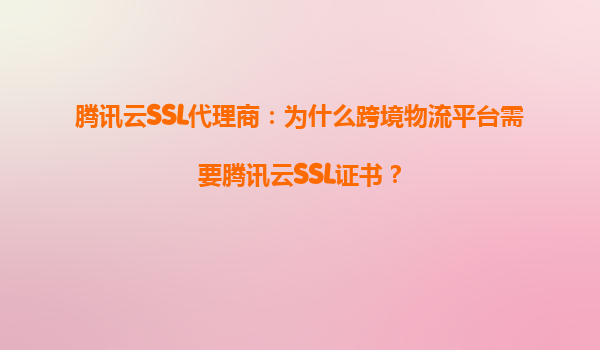 腾讯云SSL代理商:为什么跨境物流平台需要腾讯云SSL证书?