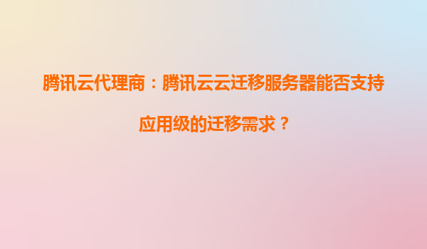 腾讯云代理商:腾讯云云迁移服务器能否支持应用级的迁移需求? 一、腾讯云云迁移服务的核心优势 腾讯云作为国内领先的云计算服务提供商,其云迁移服务(CloudMigration)凭借强大的技术能力和丰富的生态