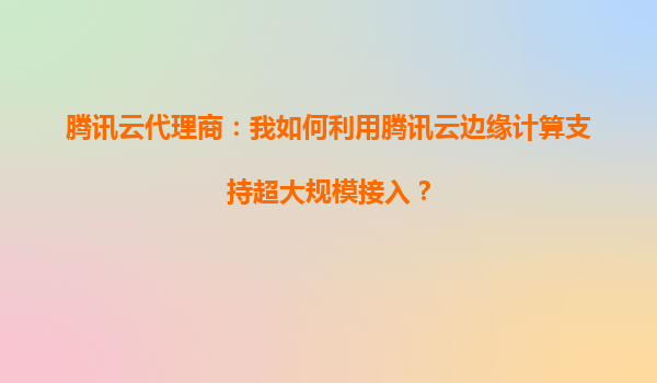腾讯云代理商:我如何利用腾讯云边缘计算支持超大规模接入? 一、引言:边缘计算与超大规模接入的挑战 在数字化时代,企业对低延迟、高并发的应用需求日益增长,尤其在物联网(IoT)、直播互动、在线教育等