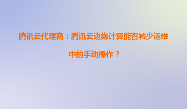 腾讯云代理商:腾讯云边缘计算能否减少运维中的手动操作? 引言 随着云计算技术的快速发展,边缘计算逐渐成为企业数字化转型的重要支撑点。腾讯云作为国内领先的云服务提供商,其边缘计算解决方案在性能、