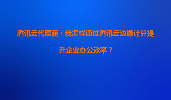 腾讯云代理商:如何通过腾讯云边缘计算提升企业办公效率 随着数字化转型的加速,企业办公环境对云计算和边缘计算的需求日益增长。腾讯云作为国内领先的云计算服务提供商,其边缘计算解决方案为企业提供了高效、安全