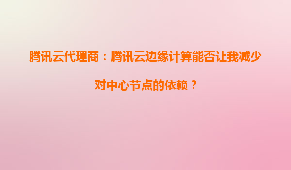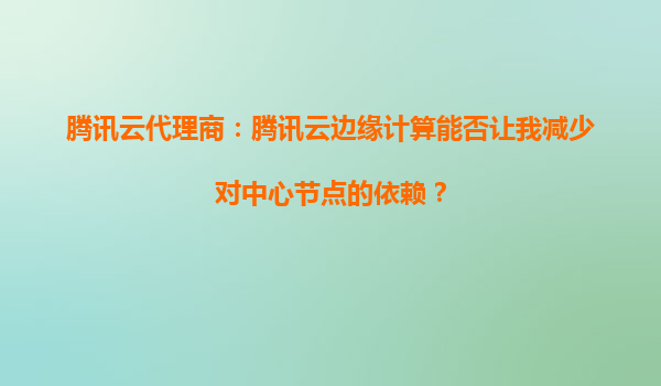 腾讯云代理商:腾讯云边缘计算如何减少对中心节点的依赖? 引言 在数字化时代,企业对低延迟、高可用性和数据安全的需求日益增长,传统的云计算架构因依赖中心节点可能无法完全满足这些需求。腾讯云