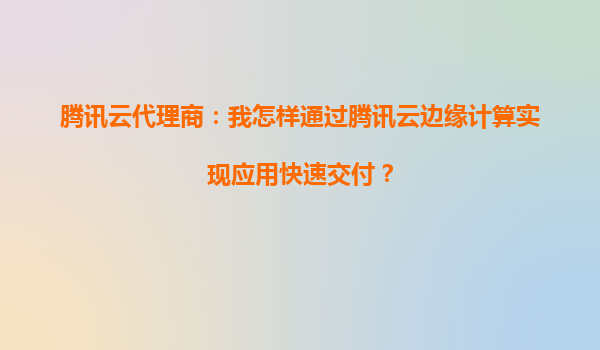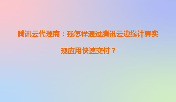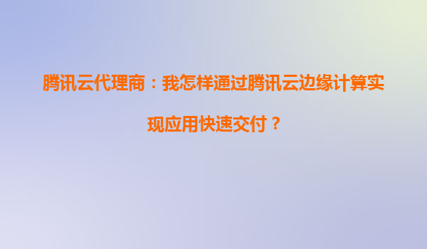 腾讯云代理商:如何通过腾讯云边缘计算实现应用快速交付? 一、边缘计算与快速交付的价值 在数字化转型浪潮中,企业对于低延迟、高可用的应用体验需求激增。传统集中式云计算虽提供强大算力,但难以满足实时性要求