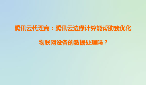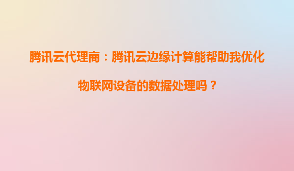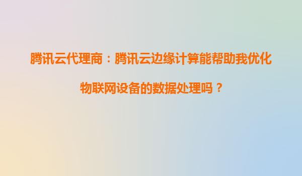 腾讯云代理商:腾讯云边缘计算能帮助我优化物联网设备的数据处理吗? 引言 随着物联网(IoT)技术的快速发展,越来越多的企业开始依赖物联网设备收集和处理海量数据。然而,传统的云计算模式在实时性和带宽消耗方面