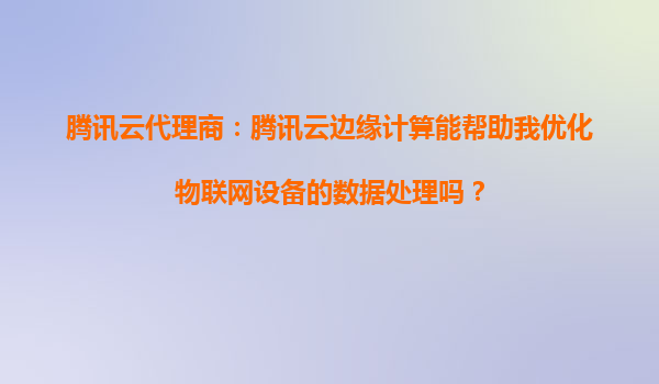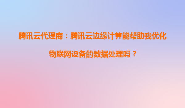 腾讯云代理商:腾讯云边缘计算能帮助我优化物联网设备的数据处理吗? 引言 随着物联网(IoT)技术的快速发展,越来越多的企业开始依赖物联网设备收集和处理海量数据。然而,传统的云计算模式在实时性和带宽消耗方面