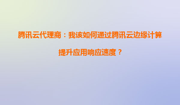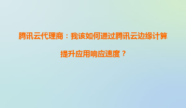 腾讯云代理商:如何通过腾讯云边缘计算提升应用响应速度? 一、边缘计算的核心价值与场景需求 在数字化时代,应用响应速度直接影响用户体验和业务转化率。传统中心化云