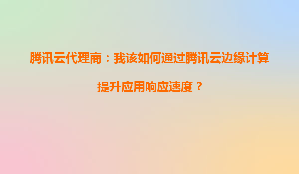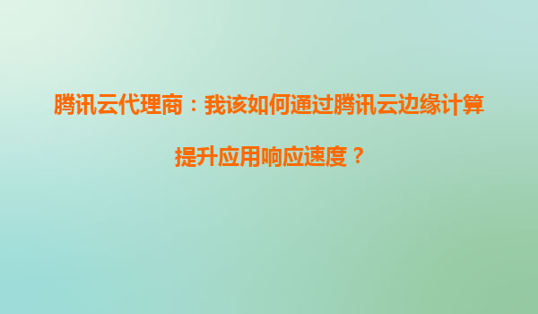 腾讯云代理商:如何通过腾讯云边缘计算提升应用响应速度? 一、边缘计算的核心价值与场景需求 在数字化时代,应用响应速度直接影响用户体验和业务转化率。传统中心化云