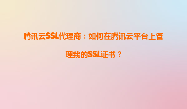 腾讯云SSL代理商:如何在腾讯云平台上管理我的SSL证书? 一、引言:腾讯云SSL证书管理的核心优势 作为国内领先的云计算服务提供商,腾讯云凭借其强大的基础设施、高效