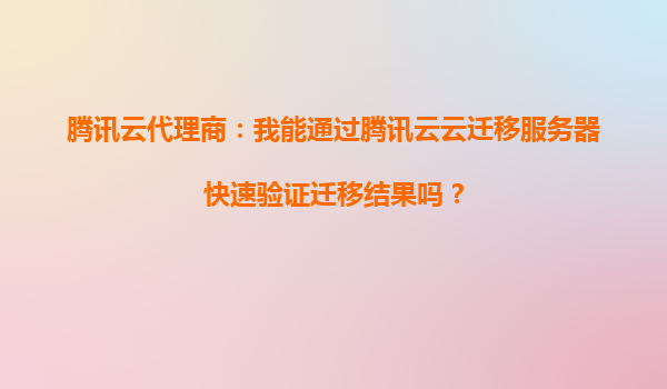 邯郸腾讯云代理商:我能通过腾讯云云迁移服务器快速验证迁移结果吗?