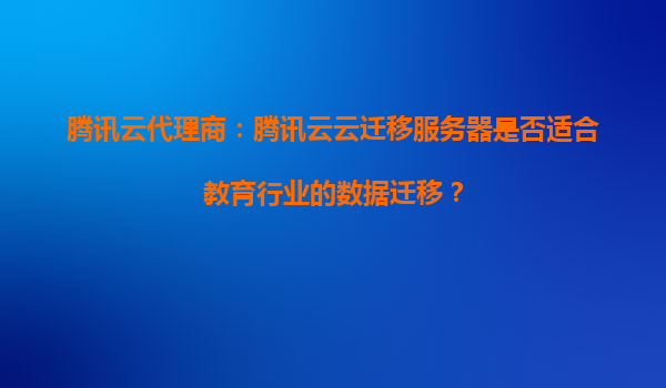 腾讯云代理商:腾讯云迁移服务器是否适合教育行业的数据迁移?