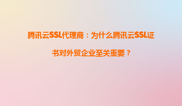 腾讯云SSL代理商:为什么腾讯云SSL证书对外贸企业至关重要?