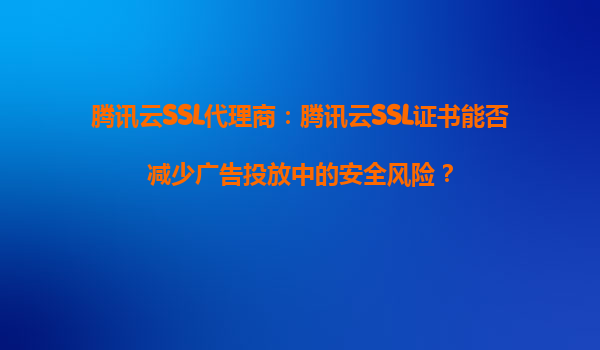 腾讯云SSL代理商:腾讯云SSL证书能否减少广告投放中的安全风险?