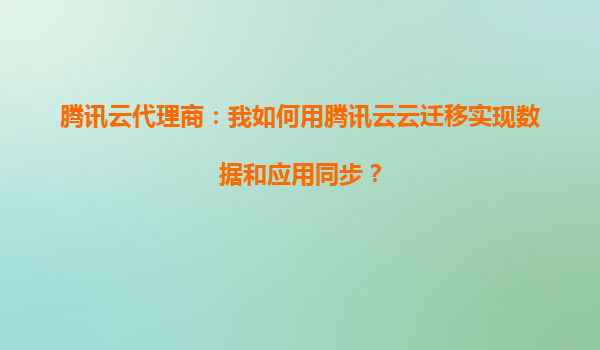 邯郸腾讯云代理商:我如何用腾讯云云迁移实现数据和应用同步?