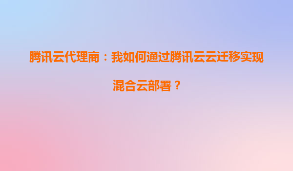 邯郸腾讯云代理商:我如何通过腾讯云云迁移实现混合云部署?