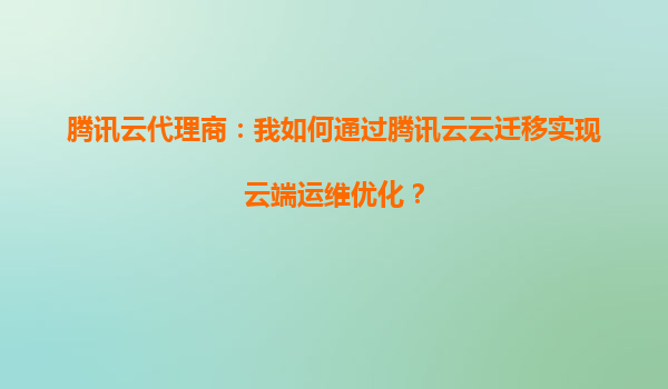 腾讯云代理商:我如何通过腾讯云云迁移实现云端运维优化?