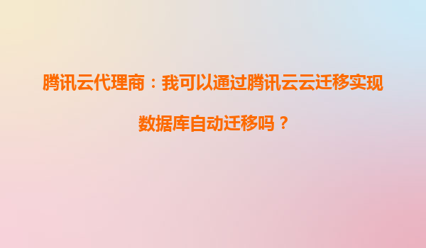 邯郸腾讯云代理商:我可以通过腾讯云云迁移实现数据库自动迁移吗?