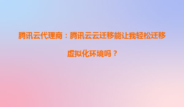 邯郸腾讯云代理商:腾讯云云迁移能让我轻松迁移虚拟化环境吗?
