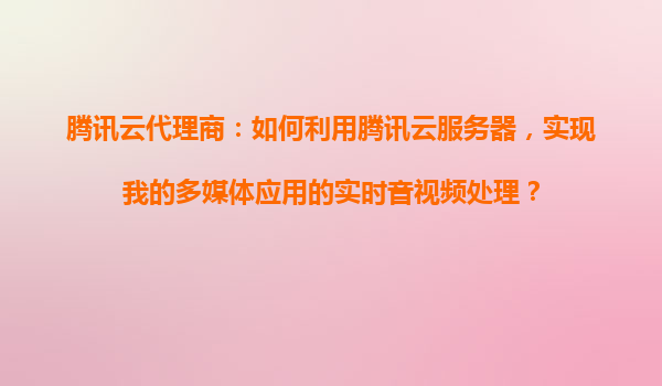 邯郸腾讯云代理商:如何利用腾讯云服务器,实现我的多媒体应用的实时音视频处理?