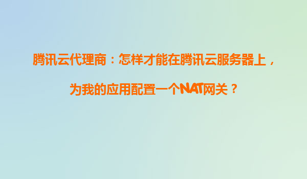 腾讯云代理商指南:如何在腾讯云服务器上为应用配置NAT网关