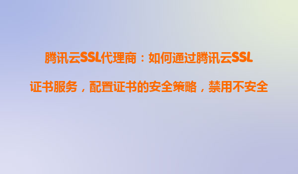 邯郸腾讯云SSL代理商:如何通过腾讯云SSL证书服务,配置证书的安全策略,禁用不安全的加密套件?
