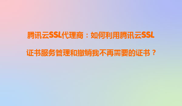 邯郸腾讯云SSL代理商:如何利用腾讯云SSL证书服务管理和撤销我不再需要的证书?
