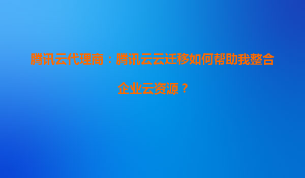 腾讯云代理商:腾讯云云迁移如何帮助我整合企业云资源?