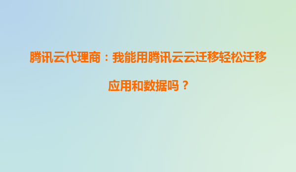 腾讯云代理商:我能用腾讯云云迁移轻松迁移应用和数据吗?
