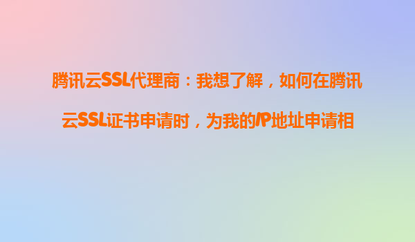 鹤岗腾讯云SSL代理商:我想了解,如何在腾讯云SSL证书申请时,为我的IP地址申请相应的SSL证书?