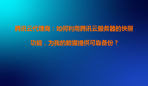 衡水腾讯云代理商:如何利用腾讯云服务器的快照功能,为我的数据提供可靠备份?