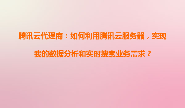衡水腾讯云代理商:如何利用腾讯云服务器,实现我的数据分析和实时搜索业务需求?