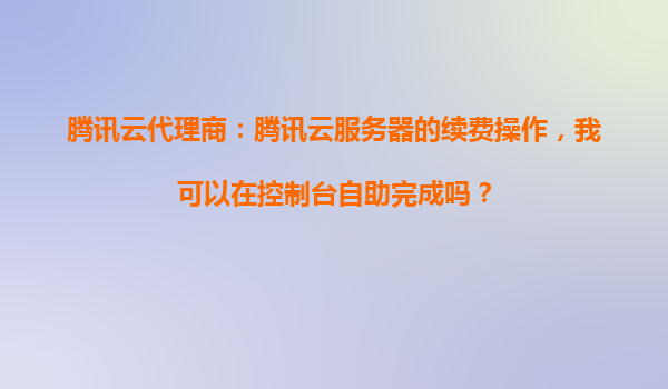 衡水腾讯云代理商:腾讯云服务器的续费操作,我可以在控制台自助完成吗?