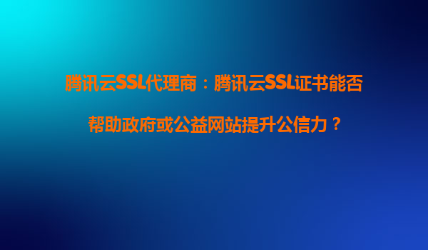 荷泽腾讯云SSL代理商:腾讯云SSL证书能否帮助政府或公益网站提升公信力?