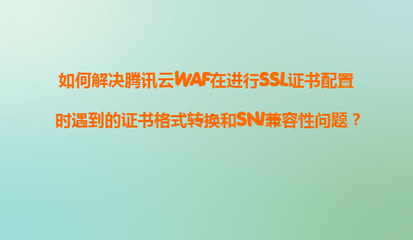 如何解决腾讯云WAFSSL证书配置中的格式转换与SNI兼容性问题 一、问题背景与腾讯云WAF优势 SSL证书配置是保障网站安全的关键步骤,但在实际部署中,用户可能遇到证书格式转换(如PEM、PF