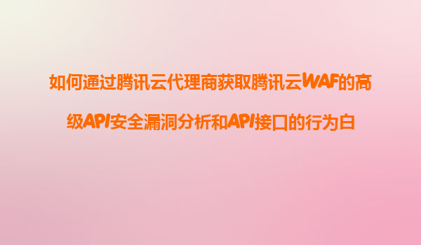 如何通过腾讯云代理商获取腾讯云WAF的高级API安全漏洞分析和API接口的行为白名单配置服务 一、引言:腾讯云WAF的核心价值与代理商优势 腾讯云Web应用防火墙(WAF)作为企业级安全防护解决方案,通过深