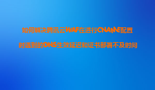 如何解决腾讯云WAF在进行CNAME配置时遇到的DNS生效延迟和证书部署不及时问题 1.问题背景与挑战 在使用腾讯云Web应用防火墙(WAF)时,用户常常需要通过CNAME记录将流量引导至WAF防护节点。然而,实际配置