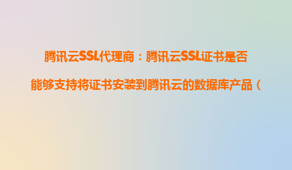 黄石腾讯云SSL代理商:腾讯云SSL证书是否能够支持将证书安装到腾讯云的数据库产品(如TencentDB)上?