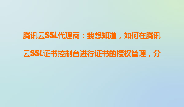黄石腾讯云SSL代理商:我想知道,如何在腾讯云SSL证书控制台进行证书的授权管理,分配给不同团队?
