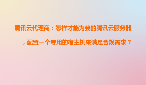 湖南腾讯云代理商:怎样才能为我的腾讯云服务器,配置一个专用的宿主机来满足合规需求?