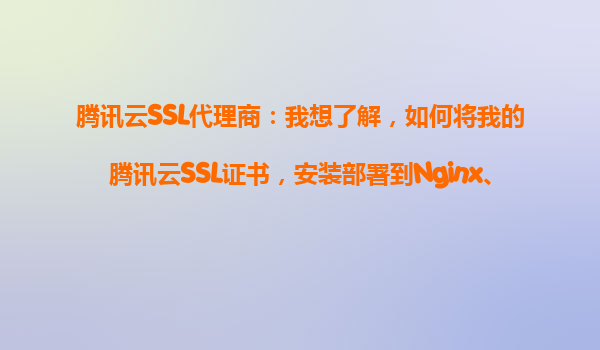 湖南腾讯云SSL代理商:我想了解,如何将我的腾讯云SSL证书,安装部署到Nginx、Apache等不同的Web服务器上?